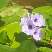 L'eichornia azurea apporte une magnifique floraison estivale avec ses lianes filant sur la surface de l'eau.