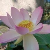 Le lotus magnifie la fontaine avec sa floraison impressionnante.