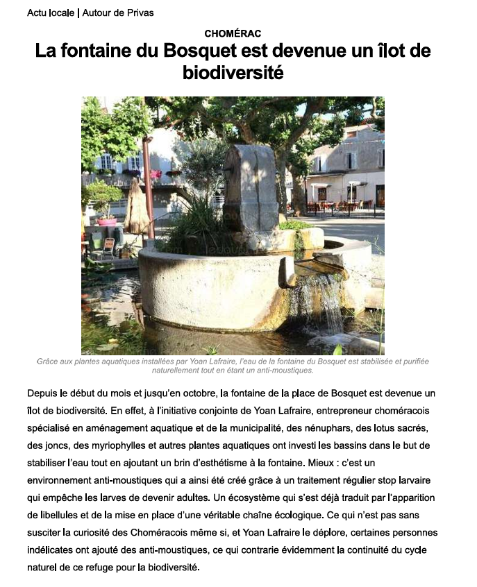 Un grand merci à Marie-Jo Volle et à M. François Arsac de m'avoir fait confiance pour végétaliser la fontaine du village.