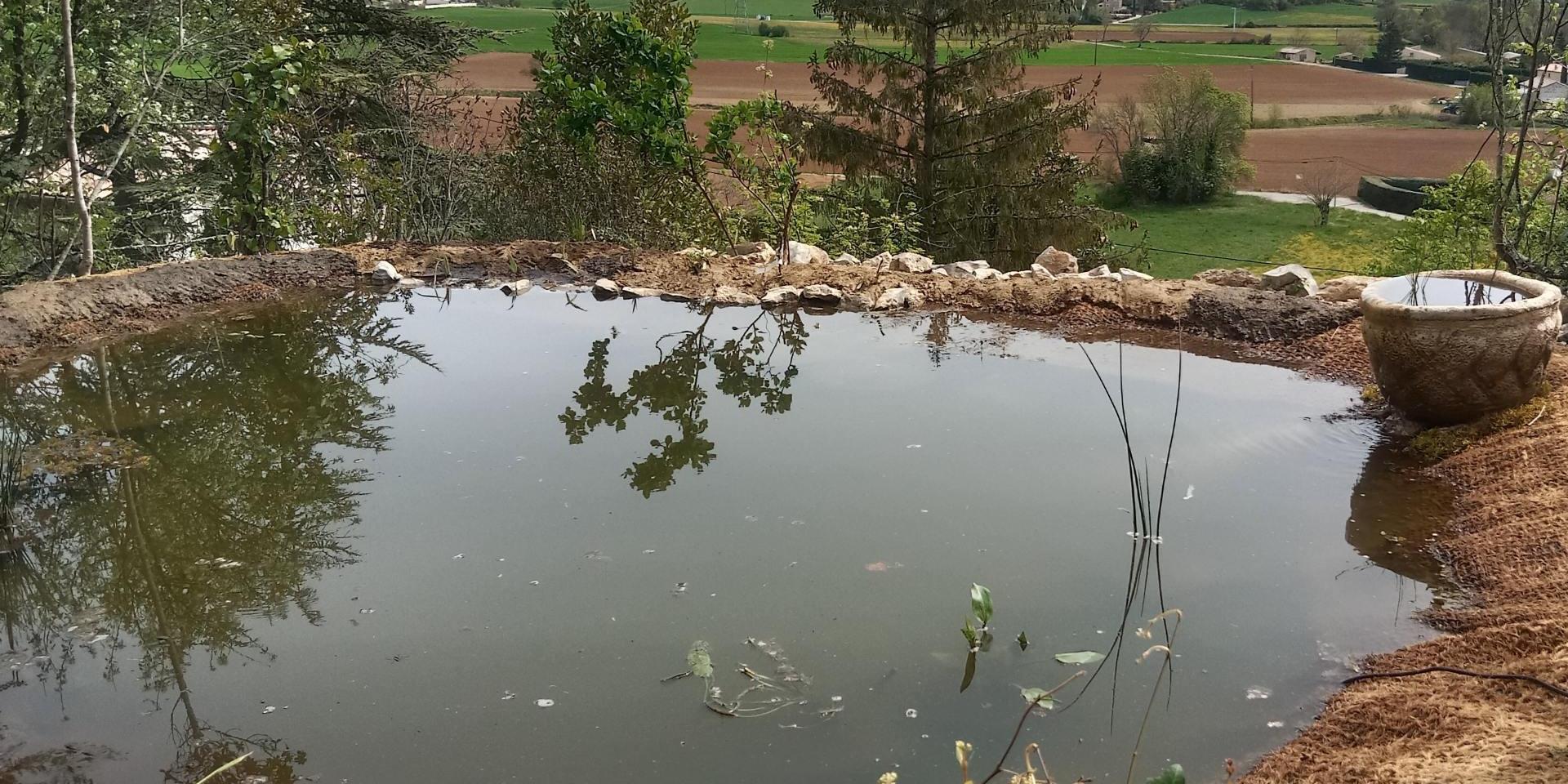 Créer une mare dans un sol caillouteux nécessite une approche sur-mesure. L’étanchéité est parfaitement assurée malgré les contraintes du terrain. Les pierres environnantes sont intégrées pour former des berges naturelles et stabilisées, tout en servant d’abris pour les amphibiens et les insectes.