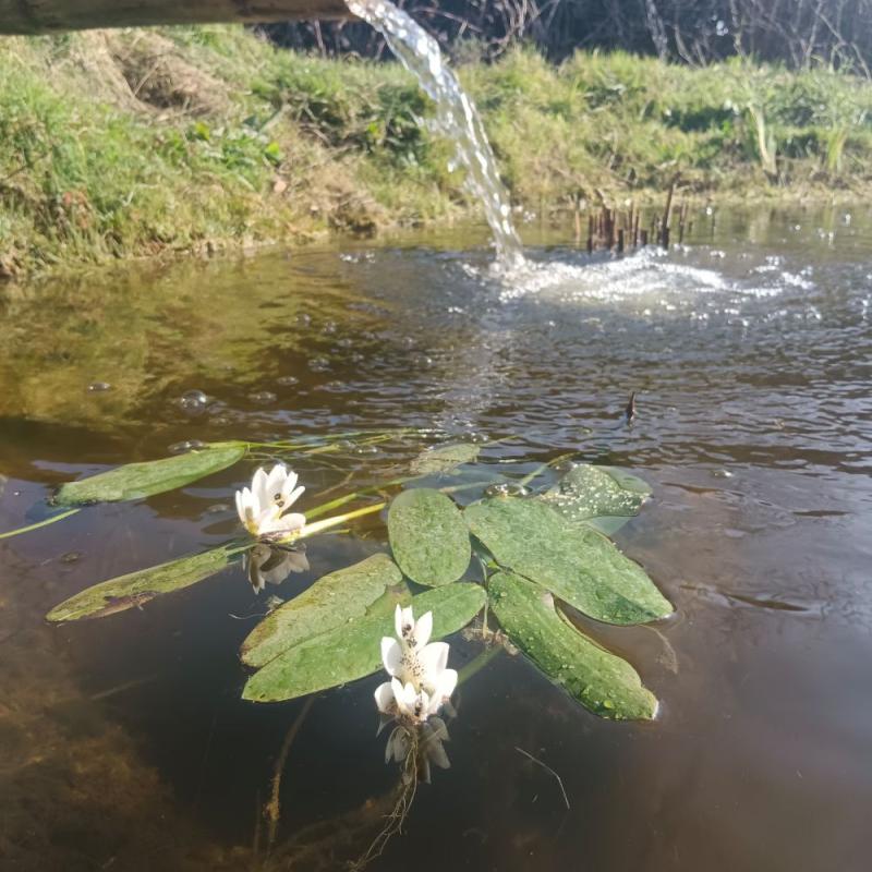 Protection : Grillage anti-poissons (carpes Koï) et surveillance des escargots, friands des jeunes feuilles.