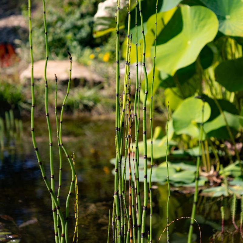 Equisetum hyemale (Prêle d'hiver ou Prêle japonaise) est une plante aquatique vivace au port ultra-graphique, idéale pour structurer les bassins et jardins d'eau modernes.